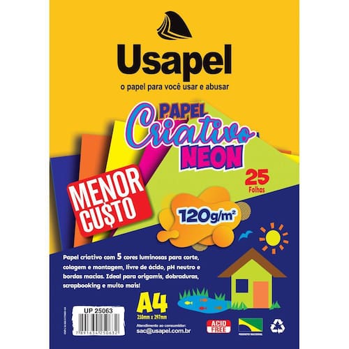 Papel criativo com 5 cores luminosas para corte,colagem e montagem, livre de ácido, pH neutro ebordas macias. Ideal para origamis, dobraduras,scrapbooking e muito mais!