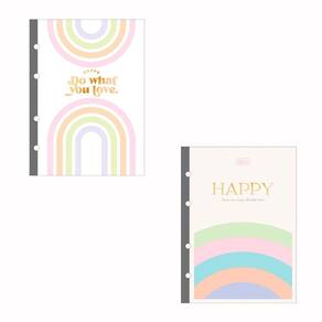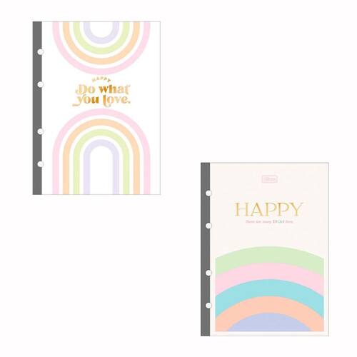 O Refil Tiliflex para Caderno Argolado Colegial Happy 80 Folhas possui folha com adesivos funcionais e folhas pautadas decoradas coladas. Ideal para o dia a dia na escola ou na faculdade.