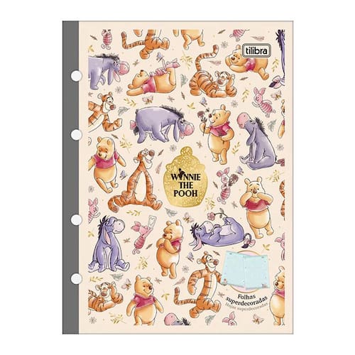 O Refil Tiliflex para Caderno Argolado Colegial Pooh 80 Folhas possui folha com adesivos funcionais e folhas pautadas decoradas coladas. Ideal para o dia a dia na escola ou na faculdade.