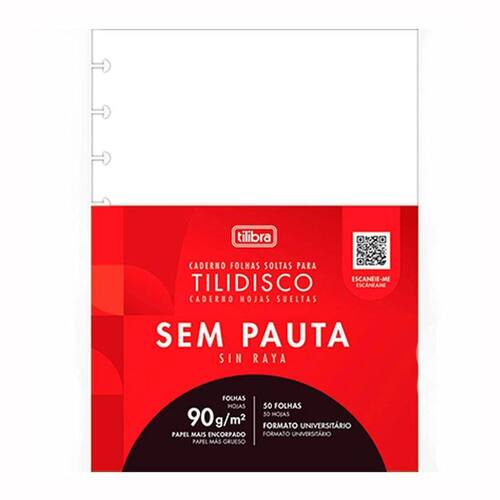 O Refil para Tilidisco Universitário sem Pauta 50 Folhas tem gramatura de 90 g/m para facilitar o encaixe dos discos e oferecer mais possibilidades de escrita com diversos tipos de canetas. O produto possui furação para 9 discos.