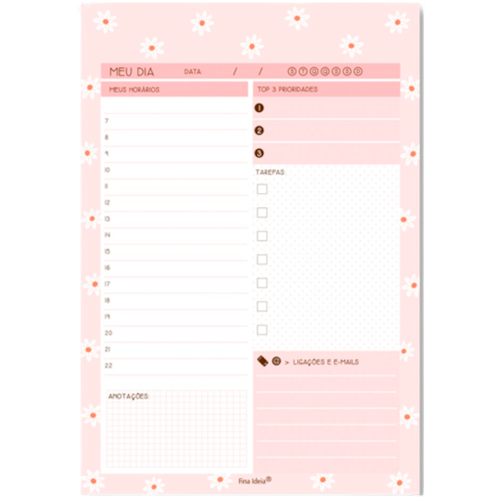 Bloco planner tarefas do Dia Fina Ideia Modelo Margaridas 80Fls