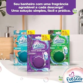 INSTRUÇÕES DE USO: 1 - Retire o bloco da embalagem plástica. 2 - Abra a tampa da caixa acoplada, em seguida insira o bloco Novo Frescor posicionando o produto longe da saída de água. 3 - Recoloque a tampa da caixa acoplada e aguarde 10 minutos para acionar a descarga. 4 - Quando a coloração da água diminuir, coloque outro Bloco para Caixa Acoplada Novo Frescor. Precauções e Segurança: Conserve fora do alcance das crianças e dos animais domésticos. Não expor o produto ao sol e calor acima de 35ºc. Não reutilizar a embalagem vazia. Lavar as mãos após o manuseio do produto. Em caso de contato com os olhos, lavar com água em abundância. Em caso de ingestão, não provocar vômito e consultar imediatamente o centro de intoxicações ou serviço de saúde mais próximo levando a embalagem vazia. Nunca reutilizar a embalagem vazia.
