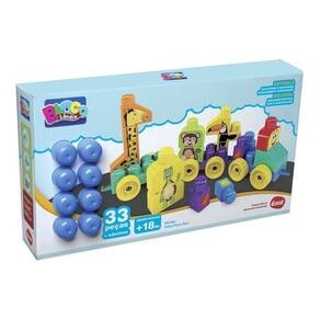 A Blocolândia Trem Puxa Zoo, da Dismat, é fabricada em plástico de alta qualidade para garantir durabilidade e resistência durante seu uso. Ela conta com 33 peças grandes e coloridas para segurança de seu bebê, evitando o risco de serem engolidas. Sua variedade oferece à criança liberdade para usar a criatividade e imaginação ao criar um cenário, montando animaizinhos e um divertido trenzinho para carregá-los para todos os lados. Ela estimula a inteligência, criatividade, planejamento, organização, concentração, raciocínio lógico, aprendizado das formas e melhorando as habilidades motoras, foco e a concentração. Ela acompanha uma cartela de adesivos para tornar a brincadeira ainda mais alegre! Para completar, sua embalagem permite armazenar as peças, otimizando na organização.