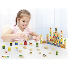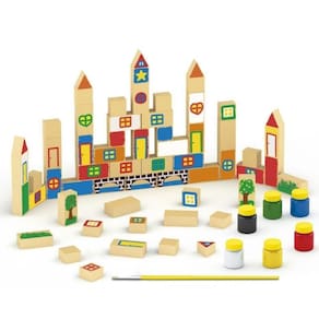 Construtor Colorir e Brincar da Junges com 60 peças em madeira de reflorestamento MDF . Acompanha 6 tintas temperas e 1 pincel para os pequenos artistas se divertirem muito Elaborado a partir de bloquinhos em MDF de 15mm de espessura, é composto com peças de tamanhos diferentes para colorir e montar a cidade que desejar. Com as peças podem-se montar diversas configurações de cenário, dando à criança maior liberdade para se divertir, criar e brincar. Brinquedo educativo e sensorial. Com ele a criança pode, além de se familiarizar com os formatos das peças, pintá-los como sua imaginação permitir. Ideal para a criança aprender as cores e desenvolver a coordenação motora, atenção e raciocínio lógico