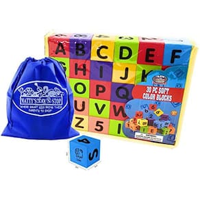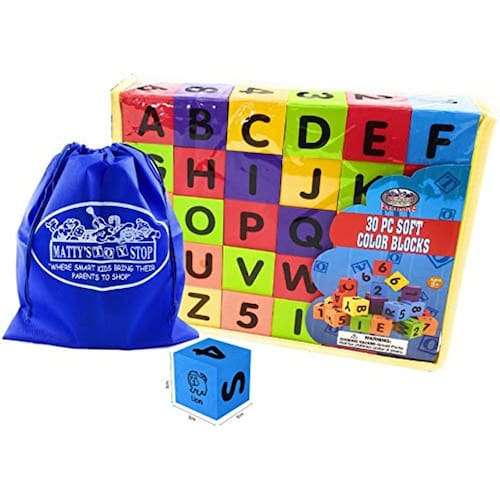Deluxe 2 "EVA Foam Colorido Building Blocks (30 PCS) com ABC's, Números e Fotos com Bônus Matty's Toy Stop Storage Bag ... é INCRÍVEL! Faz um grande presente e é perfeito para escolas, jogos, brinquedos educativos, lembrancinhas de festa, pré-escolas, cestas, necessidades especiais, promoções e muito mais! Para maiores de 3 anos - Diversão para toda a família! - Inclui Bônus "Matty's Toy Stop" Saco de Armazenamento!