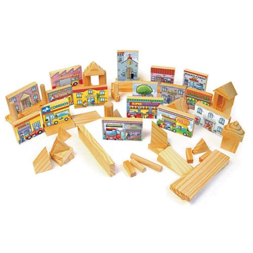 Blocos De Construção E Urbanismo 100 Peças Mochila Conjunto de 100 peças grandes de madeira natural e também decorada, visando representar cenários da vida urbana e atividades na cidade como: lanchonete, correio, mercado, banco, escola, hospital, loja, igreja, correios, etc, além de telhados, muros e rampas. Acompanha bolsa / mochila para guardar as peças. CE-BRI/ICEPEX - N 00928-96 Ean: 7898325170842