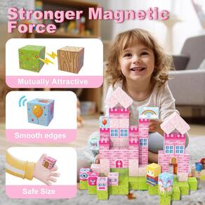 -?Novo design de castelo magnético?O conjunto de construção de castelos de princesas WSHIMIN foi projetado especialmente para meninas, cria possibilidades dinâmicas de jogo e incentiva brincadeiras abertas. Crie possibilidades infinitas usando elementos como castelos, príncipes, monstros cor de rosa, balões, flores e muito mais. Nosso kit de cubos magnéticos com ímãs internos fortes, que torna mais fácil para crianças de 3 anos ou mais unir os cubos e tornar a construção robusta.