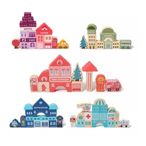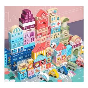 Blocos de construção: cidade de madeira Construa uma cidade inteira, arme-a de maneiras diferentes. Contém 100 unidades. Vem com uma base montável. Desenvolve habilidades lógicas, engenhosas e divertidas. Ele vem em um balde e uma bolsa para guardar e transportar em qualquer lugar. Traga a escola, livraria, café, hotel, posto de bombeiro, delegacia de polícia e hospital. Feito de madeira lisa pintada, livre de tóxicos. Idade recomendada: + 3 anos