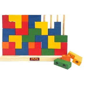 blocos de encaixe vertical são brinquedos educativos e didáticos para crianças brincarem e se desenvolverem. Além do brinquedo estimular a criatividade, auxiliam no desenvolvimento da concentração, da coordenação motora e do raciocínio lógico, fazendo com que as crianças busquem soluções de forma independente e sintam o prazer de ver o seu pequeno projeto concluído, contando com a possibilidade de desfazer e começar tudo de novo. Acompanham peças com formas geométricas em madeira, produto bem feito, bem acabado e com cores vibrantes que chamam a atenção dos pequenos, a criança vai poder encaixar e empilhar com segurança. - base em madeira com 10 pinos para encaixe das peças - 25 peças geométricas em madeira com furos para encaixe na base - pode ser utilizado também como um quebra cabeça / puzzle vertical