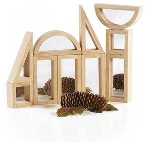 O conjunto Guidecraft Mirror Blocks – 10 peças foi desenvolvido como acessório de blocos para crianças a partir de 2 anos, combinando formas geométricas em madeira com superfícies espelhadas internas para exploração visual e brincadeiras de construção. Cada bloco possui moldura em madeira de seringueira com cantos arredondados e janelas internas de Mylar espelhado em ambas as faces, criando reflexos múltiplos de objetos, luz e cores ao redor.?