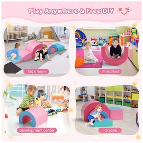 "Playset DIY de Rastejar e Escalar" – O conjunto de blocos de escalada em espuma vem com 5 blocos de formas diferentes, permitindo que as crianças criem seus próprios caminhos de rastejamento. Isso ajuda a desenvolver a criatividade e habilidades de resolução de problemas, proporcionando uma experiência de jogo divertida e desafiadora.