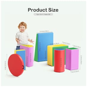 "Conjunto Multipropósito de 9 Peças & Dicas": Este conjunto de blocos de espuma de 9 peças oferece várias combinações e arranjos criativos, com um design muito fofo! Os blocos de escalada em espuma incluem 3 blocos retangulares, 1 cilindro, 2 blocos em forma de escorregador, 1 bloco em meia-cilindro e 2 blocos redondos com corda pendurada. Recomendado para crianças a partir de 1 ano e crianças em idade pré-escolar. Verifique as medidas do produto na imagem antes de comprar.