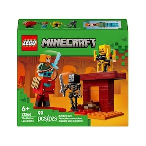 LEGO A Batalha de Lava no Nether 21266 A Batalha de Lava no Nether (21266) com 99 peças, é um pequeno conjunto LEGO Minecraft que fornece uma versão para construir e brincar do famoso videogame Este conjunto de atividade de Minecraft versátil contém figuras conhecidas do jogo, recursos divertidos e ação sem fim, tornando-o um agrado perfeito para crianças maiores de 6 anos As crianças juntam-se à Alex do Minecraft em uma missão para remover detritos ancestrais de uma seção da ponte da fortaleza do Nether na floresta carmesim Quando o detrito é removido e elementos de lava automaticamente caem em cascata, as figuras Minecraft de um esqueleto wither com uma espada de pedra e uma chama que gira varas ficam no caminho da fuga da Alex As crianças usam a icônica espada de diamante para batalhar contra as criaturas antes de escapar em um andarilho, outra figura do Minecraft com pernas articuláveis e uma sela Jogadores de Minecraft sabem que precisam pegar fungo distorcido para guiar o andarilho