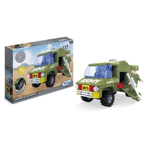 A linha de Blocos de encaixe Aliança Justiça e Paz é composta de várias referências tornando o produto componível. Com os blocos de encaixe e Aliança Justiça e Paz Caminhão de Transporte que contém 113 peças as crianças podem montar um lindo caminhão. As peças são muito resistentes, leves e fáceis de montar. O brinquedo motiva a passar o tempo através do aprender brincando, pois desenvolvem a coordenação motora e habilidades de diferenciação das partes e do todo.Recomendado para crianças acima de 6 anos.