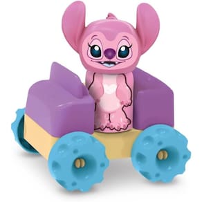 Conteúdo - 6 blocos de 1 pino, 4 blocos de 2 pinos, 4 blocos de 3 pinos, 2 blocos inclinados, 2 blocos baixos de 2 pinos, 1 base de montagem de carrinho, 4 rodas, 1 cabeça de personagem