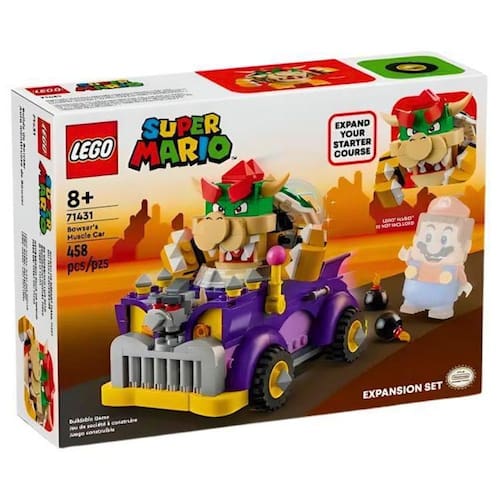 Dirija e faça dramatização com o conjunto de expansão Muscle Car de Bowser Este carro de brinquedo colecionável LEGO Super Mario para maiores de 8 anos tem muitos recursos lúdicos, incluindo uma alavanca que faz o enfeite do capô se mover ou acionar outros truques O conjunto também inclui uma figura construída em tijolos do personagem Bowser do Super MarioTM com uma Action Tag