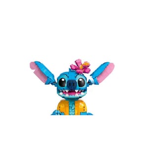 Atraia crianças mais velhas e fãs de Lilo e Stitch com mais de 9 anos com este conjunto de brincar e exibir LEGO Disney Stitch (43249), apresentando um personagem Stitch O extraterrestre incorrigível do filme de sucesso da Disney, vestido com uma camisa havaiana, tem orelhas móveis e uma cabeça giratória, uma casquinha de sorvete para construir que o personagem pode segurar e uma flor para construir que pode ser adicionada ou removida
