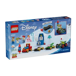 Presenteie qualquer criança ou fã com este brinquedo de construção LEGO® Disney com uma locomotiva, 2 carros alegóricos, um carro e 4 personagens Toy Story da LEGO Disney e Pixar