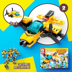 Itens da Embalagem: - 1 Caixa Blocos de Montar e Desmontar (Nº 2) Avião Jato 2 em 1 Robô Transformers Truck Bots Block Brinq 44 Peças.