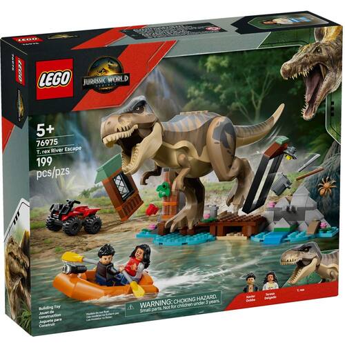 O 76975 Trex River Escape é um set compacto e cheio de ação — ideal para crianças e fãs de dinossauros que buscam interação e encenação O Trex moldado é o grande destaque, acompanhado de recursos de destruição e lançamento que estimulam a criatividade Apesar do preço, o valor agregado do dinossauro exclusivo e as possibilidades de brincadeira fazem dele uma opção bacana para quem curte a linha Jurassic World