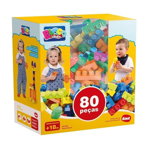 Blocos de Montar - Mais Blocos - Dismat com 80 peças é ideal para que seu pequeno se desenvolva brincando. O Mais Blocos - Dismat é perfeito para bebês, pois suas peças são grandes e resistentes. Estimula a inteligência, criatividade e organização. Contribui para o desenvolvimento de habilidades motoras, foco e concentração. INFORMAÇÕES: • Contém: 29 pinos simples, 37 pinos duplos, 4 pinos quádruplos, 10 pinos triplos • Recomendação: para crianças a partir de 18 meses Aviso: As imagens são meramente ilustrativas. As cores e estampas dos produtos podem ter variações. As informações são de responsabilidade do fabricante ou fornecedor.