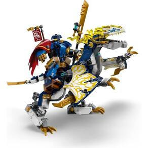 O Mech Piloto de Dragões do Rogue (71843) permite que rapazes e raparigas 8+ encenem as histórias da temporada 3 de NINJAGO® A Ascensão do Dragão As crianças podem brincar separadamente com um mech e com o primeiro mech dragão NINJAGO antes de o combinarem no incrível Mech Piloto de Dragões do Rogue O mech inclui braços e pernas móveis, o torso que abre para colocar uma minifigura no interior e uma espada, enquanto a figura do dragão inclui asas, cabeça, mandíbula, pernas e cauda móveis e uma espada Existem 4 minifiguras: os ninja Rogue e Arin e a dupla de vilões da Rox e do Guerreiro Draconiano Espectral, com uma mensagem secreta que só pode ser lida com a lâmina de revelação do Arin