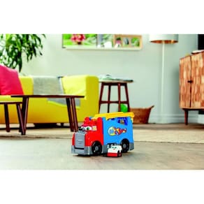 Os pequenos fãs de corrida podem ampliar a aventura com este caminhão de plataforma grande e um carro de corrida que faz sons de corridas reais!
