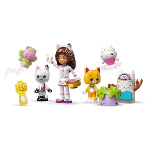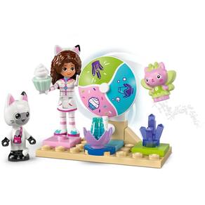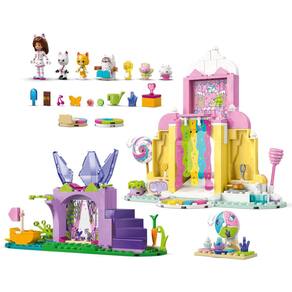 O conjunto criativo apresenta 2 cenários e muitas figuras LEGO, incluindo Gabby, Pandy Paws e Kitty Fairy O Monte dos Docinhos mergulha os pequenos em um mundo mágico de guloseimas açucaradas Os personagens podem deslizar pela cachoeira colorida em boias de donuts O Jardim da Fadinha é um retiro fantástico onde a Kitty Fairy senta em seu trono de cristal com flores e joias escondidas para as crianças encontrarem