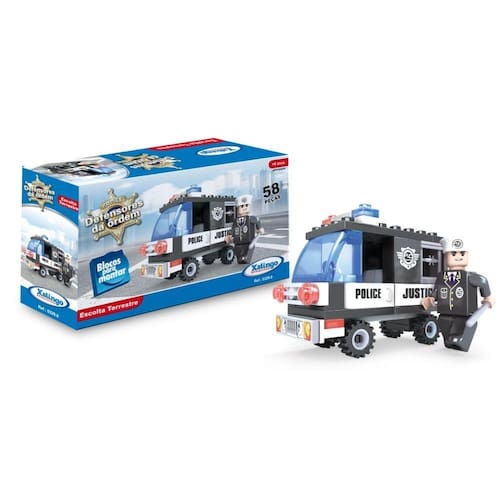 Os blocos de montar têm divertido gerações, são brinquedos educativos que estimulam o aprendizado das crianças. Os blocos de encaixe Defensores da Ordem Escolta Terrestre possuem 58 peças para você montar um carro de polícia. Os blocos podem ser utilizados para montar e desmontar quantas vezes você quiser. Estimule sua imaginação montando diferentes modelos. Recomendado para crianças acima de 6 anos.