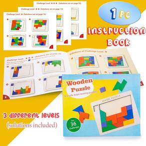 - Pacote Super Econômico - Este conjunto de quebra-cabeças de madeira é lindamente embalado e inclui 15 blocos de madeira em vários formatos, uma placa de madeira e um manual de instruções do usuário com 36 desafios. Os níveis de desafio variam de 1 a 3, com níveis mais altos oferecendo maior complexidade e dificuldade.