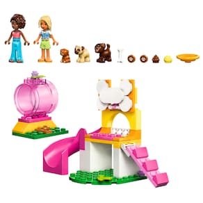 Descrição do produto : " Este kit de construção infantil incrível combina a fofura dos filhotes com brincadeira de faz de conta para encantar meninas e meninos a partir de 4 anos. Os pequenos amantes de animais podem construir o Playground para Filhotes LEGO® Friends (42665) e se divertir criando histórias de amizade com os personagens. O conjunto inclui as minibonecas Aliya e Sara, 3 bonecos de cachorro e muitos acessórios para brincadeiras imaginativas. Este conjunto de animais inspira as crianças a brincar com os personagens enquanto os amigos ajudam os cachorrinhos fofos a descer pelo escorregador, subir a escada e correr pelo tubo. O conjunto é um ótimo presente para quem ama cachorros e inclui acessórios divertidos, como uma bola, biscoitos e um osso, além de um cocô de cachorro para mais risadas! : "
