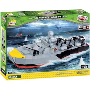 Blocos para montar Cobi - Barco Patrol Torpedo Boat PT-305 480 Peças Venha se divertir montando este barco torpedeiro, com partes móveis, canhões e hélices que giram, excelente acabamento final. Compatível com outras marcas. Ótima diversão para toda a família. Melhor custo benefício do mercado (custo por bloquinho) e melhor acabamento final. Possui manual de instruções detalhado e adesivos para personalização. Certificado INMETRO: CE-BRI/BRICS 00167-15