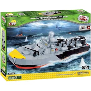 Blocos para montar Cobi - Barco Patrol Torpedo Boat PT-305 480 Peças Venha se divertir montando este barco torpedeiro, com partes móveis, canhões e hélices que giram, excelente acabamento final. Compatível com outras marcas. Ótima diversão para toda a família. Melhor custo benefício do mercado custo por bloquinho e melhor acabamento final. Possui manual de instruções detalhado e adesivos para personalização. Certificado INMETRO: CE-BRI/BRICS 00167-15