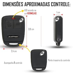 Controle de Presença: - Tensão de operação: 3 Volts; - Frequência de operação: 433.92 MHz; - Tipo de Bateria: CR2032.