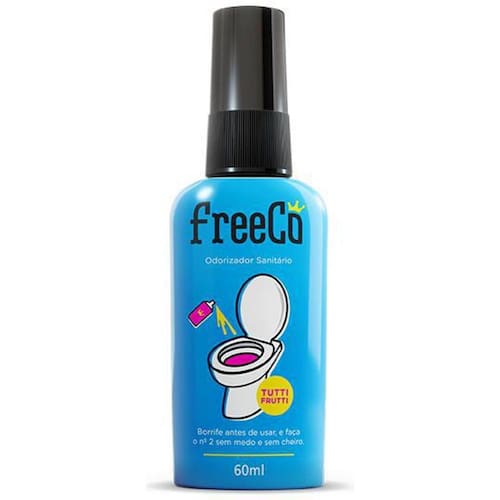 Com fragrância de tutti frutti, FreeCô é 1º bloqueador de odores sanitários do Brasil, eliminando de forma definitiva o mau cheiro do nº2 e também o constrangimento em utilizar o banheiro. Esta versão com 60 ml é ideal para deixar em banheiros e lavabos. Na sua casa ou no trabalho. Modo de usar: 01. Antes de utilizar o vaso, posicione o frasco na altura da tampa do sanitário com o borrifador direcionado à água e borrife 5 vezes. 02. Os óleos naturais criarão uma barreira que evitará que os odores Desagradáveis apareçam. 03. Apenas o aroma de FreeCô Lavanda será perceptível e o banheiro ficará sem nenhum vestígio de mau cheiro. Borrifou, usou, bloqueou
