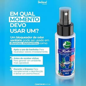 01 - Bloqueador de Odor Sanitário, Aroma de Capim Limão, 60ml, Linha Relax Pantanal Aromas