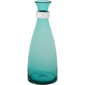 Blume Garrafa Decorativa 33x13x13cm Vidro Azul Essa garrafa de vidro possui uma superfície lisa e um anel de vidro que auxilia numa pegada firme. Ela possui formas geométricas arredondadas que podem fazer toda a diferença na decoração do ambiente. Esse produto pode ser utilizado para trazer um toque da para dentro dos espaços ou, simplesmente como um objeto de enfeite para móveis.