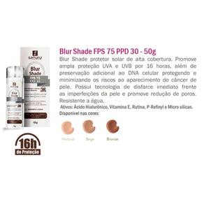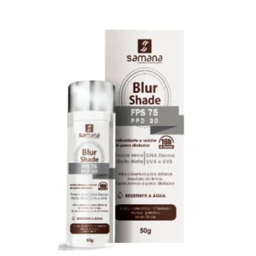 Blur Shade FPS 75 PPD 30 - cor Bege - da Samana é um protetor solar de alta cobertura com ativos de tratamento. Promove ampla proteção UVA e UVB por 16 horas, além de preservação adicional ao DNA celular protegendo e minimizando os riscos ao aparecimento do câncer depele. Possui tecnologia de disfarce imediato frente as imperfeições da pele e promove redução de poros. Resistente a água.