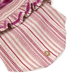 Blusa para fêmeas com fechamento em botão de madeira, feita em tecido de algodão premium com bordado de linha na cor uva. Possui aplicação de fita de veludo na cor uva e mangas amplas.
