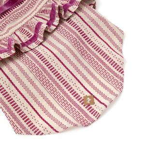 Blusa para fêmeas com fechamento em botão de madeira, feita em tecido de algodão premium com bordado de linha na cor uva. Possui aplicação de fita de veludo na cor uva e mangas amplas. Marca: Não Informado