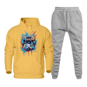Blusa Canguru Plus Size Moletom Estampada Masculina Com Calça Jogger Lisa Alta Qualidade Quentinho - Amarelo - G1