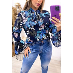 Blusa Crepe Manga Longa Detalhe Amarrar Blusa de Crepe manga longa. Possui detalhe amarrar. Com caimento leve sobre o corpo, essa peça é confortável e estilosa.