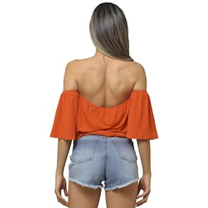 Blusa Cropped Ciganinha Feminino Viscolycra Laranja Tendência