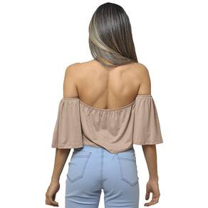 Blusa Cropped Ciganinha Feminino Viscolycra Nude Tendência - Bege - P
