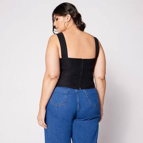Blusa Cropped de Alça Plus com Aro em V e Bojo Preto