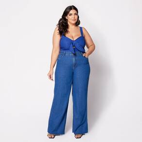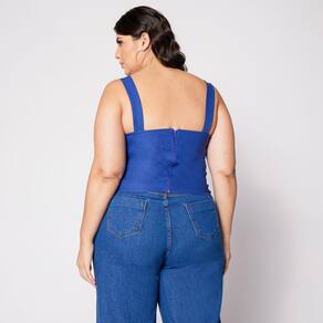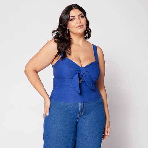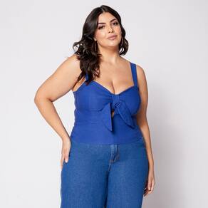 Blusa Cropped de Alça Plus com Nó e Bojo Azul