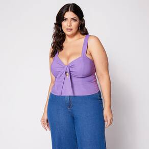 Blusa Cropped de Alça Plus com Nó e Bojo Lilás