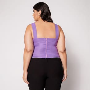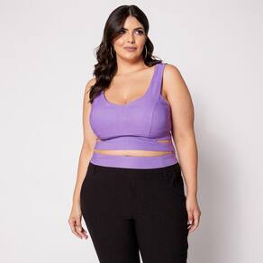 Blusa Cropped de Alça Plus com Recorte e Bojo