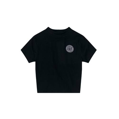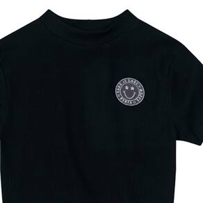 Blusa cropped infantil menina, perfeita para combinar com os jeans da coleção e compor looks estilosos, do jeitinho que elas ama. A peça confeccionada em ribana class possui mangas curtas, gola redonda e aplique termocolante. Invista! Tradução: "Vá com calma; Feliz; Vibrações"