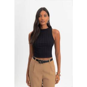 Blusa cropped feminina canelada Essendi Preto - Preto - P